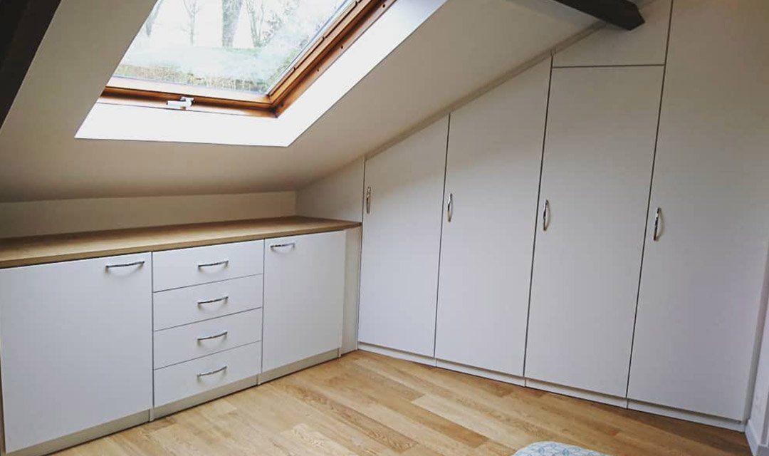 Une porte de placard coulissante permet de créer des rangements esthétiques et ingénieux. Poser une porte coulissante nécessite la mise en place d’un rail pour votre système coulissant. Nous fabriquons et installons des aménagements sur mesure selon votre espace : porte coulissante sous pente, porte de placard coulissante grande hauteur…